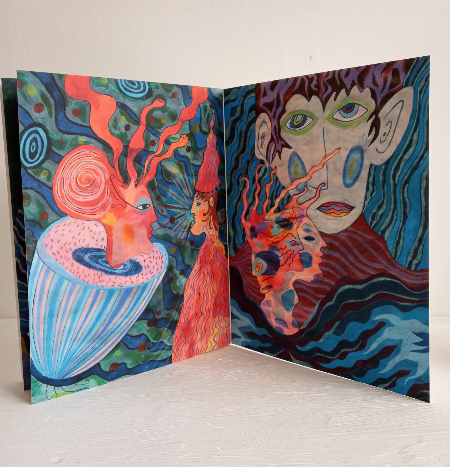 6 pages. Impression sur papier Lavis 200 gr Clairefontaine. Relié à la main. Textes et illustrations créés par Alex Hays. Edité par Maison d'art Pluralium. Livré emballé.